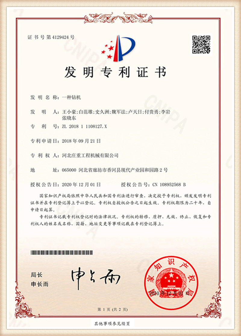 All products have successively obtained ISO9001:2015 certification, CE certification and GOST certification.Among them, the sales of piling machinery is the first brand in China in Southeast Asia market, and has continuously become the excellent Chinese supplier of African exploration industry. And in Singapore, Dubai, Algiers design services, to provide global technology and spare parts supply quality after-sales service.